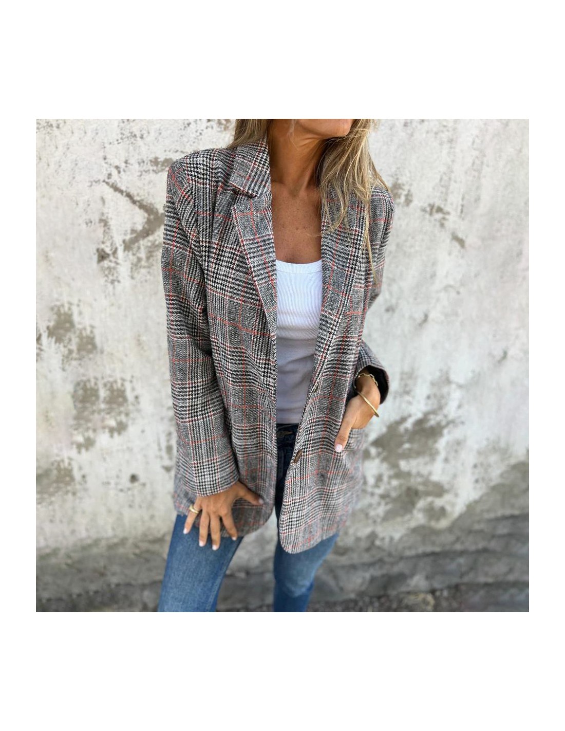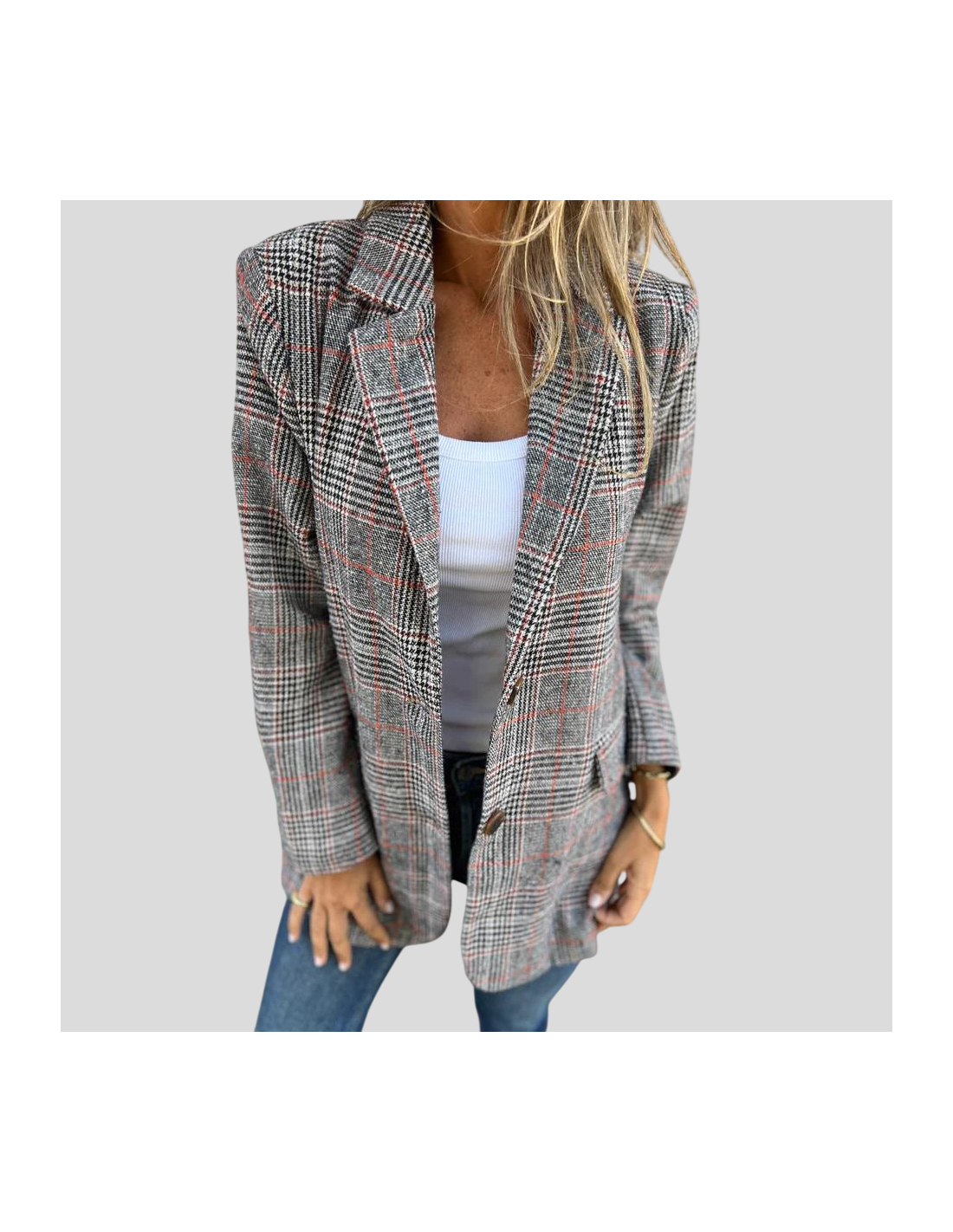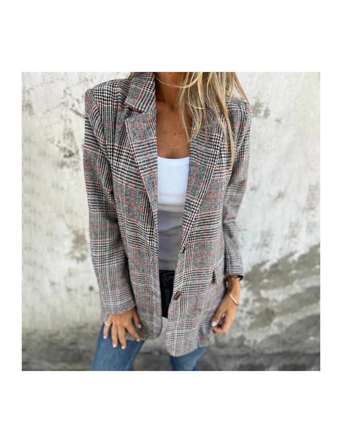 Blazer feminino com padrão xadrez clássico, corte estruturado e botões frontais. Sofisticado e versátil, perfeito para looks casuais ou profissionais. Uma peça intemporal que acrescenta estilo a qualquer guarda-roupa.
