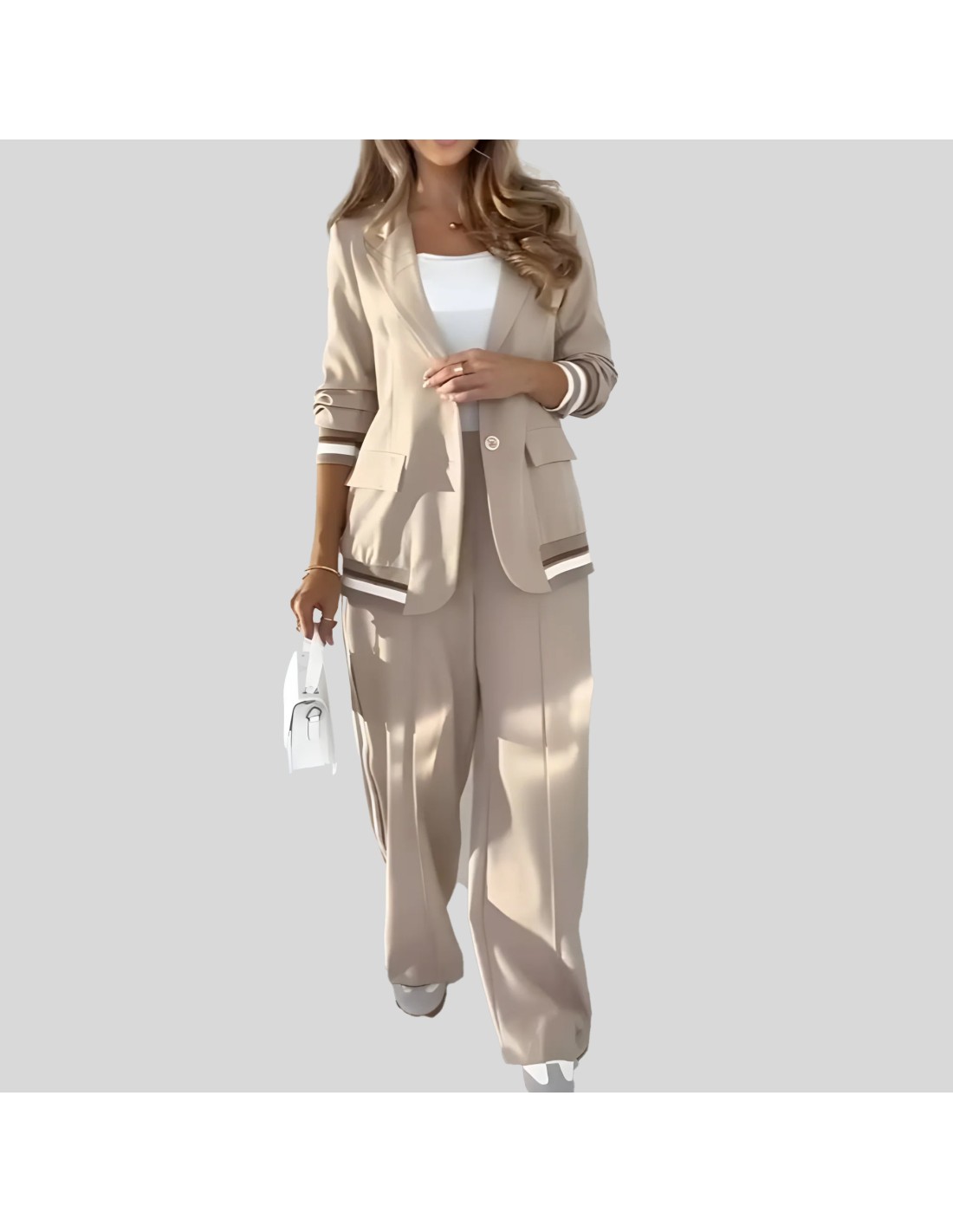 Conjunto feminino elegante de blazer e calças, perfeito para ambientes profissionais, ocasiões especiais ou uso diário. Uma escolha sofisticada, confortável e versátil que valoriza qualquer guarda-roupa.