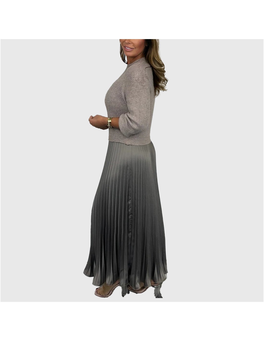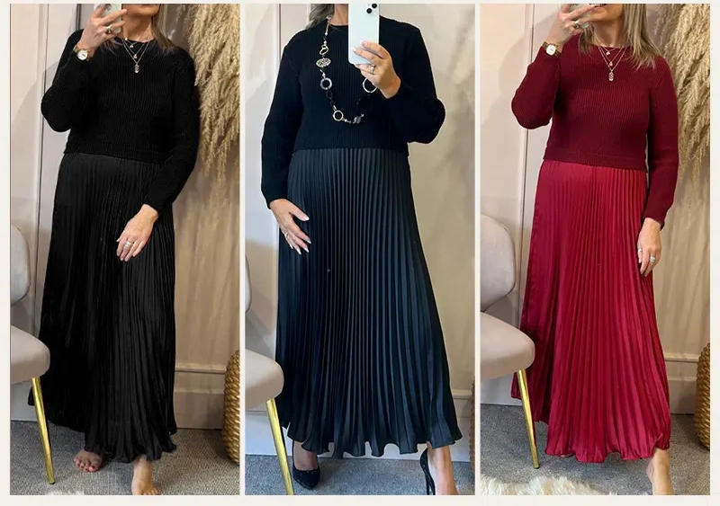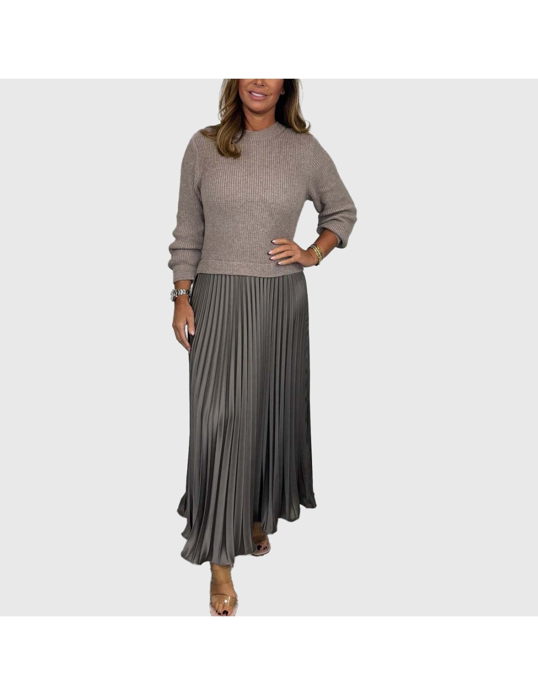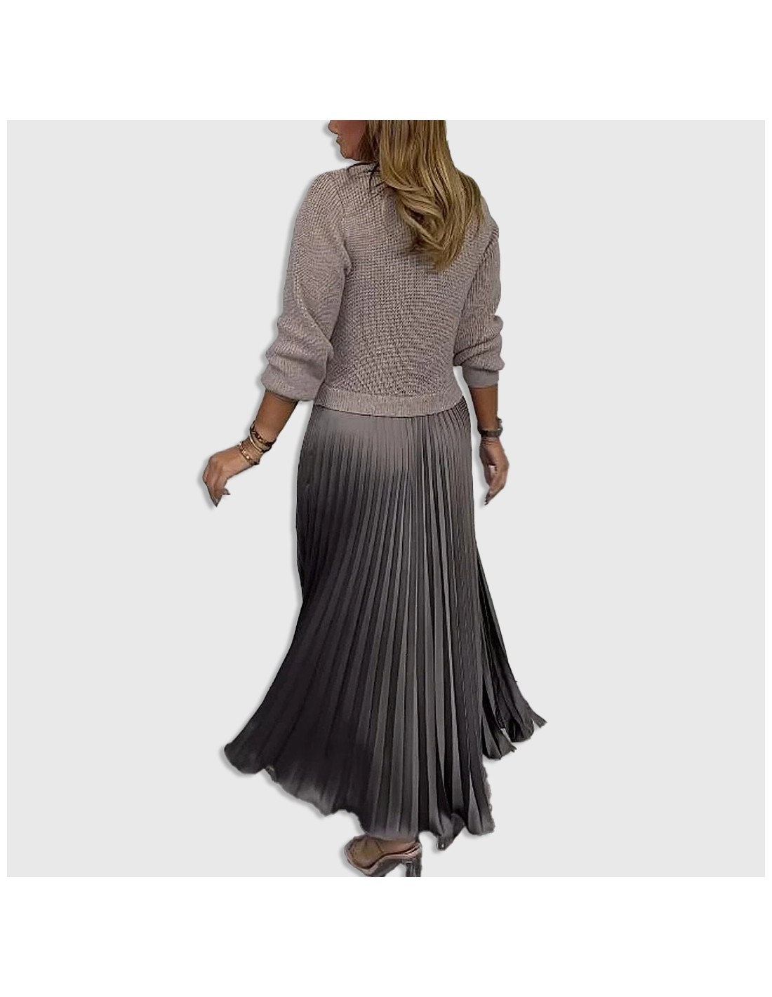 • Conjunto de duas peças: camisola de malha e saia plissada
