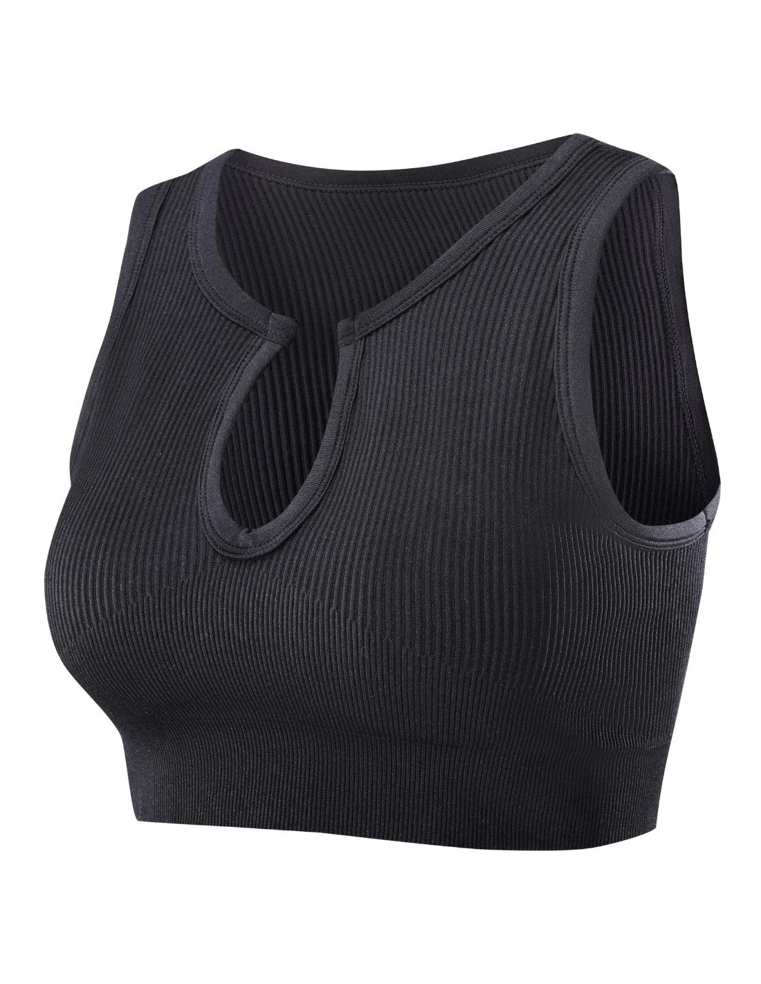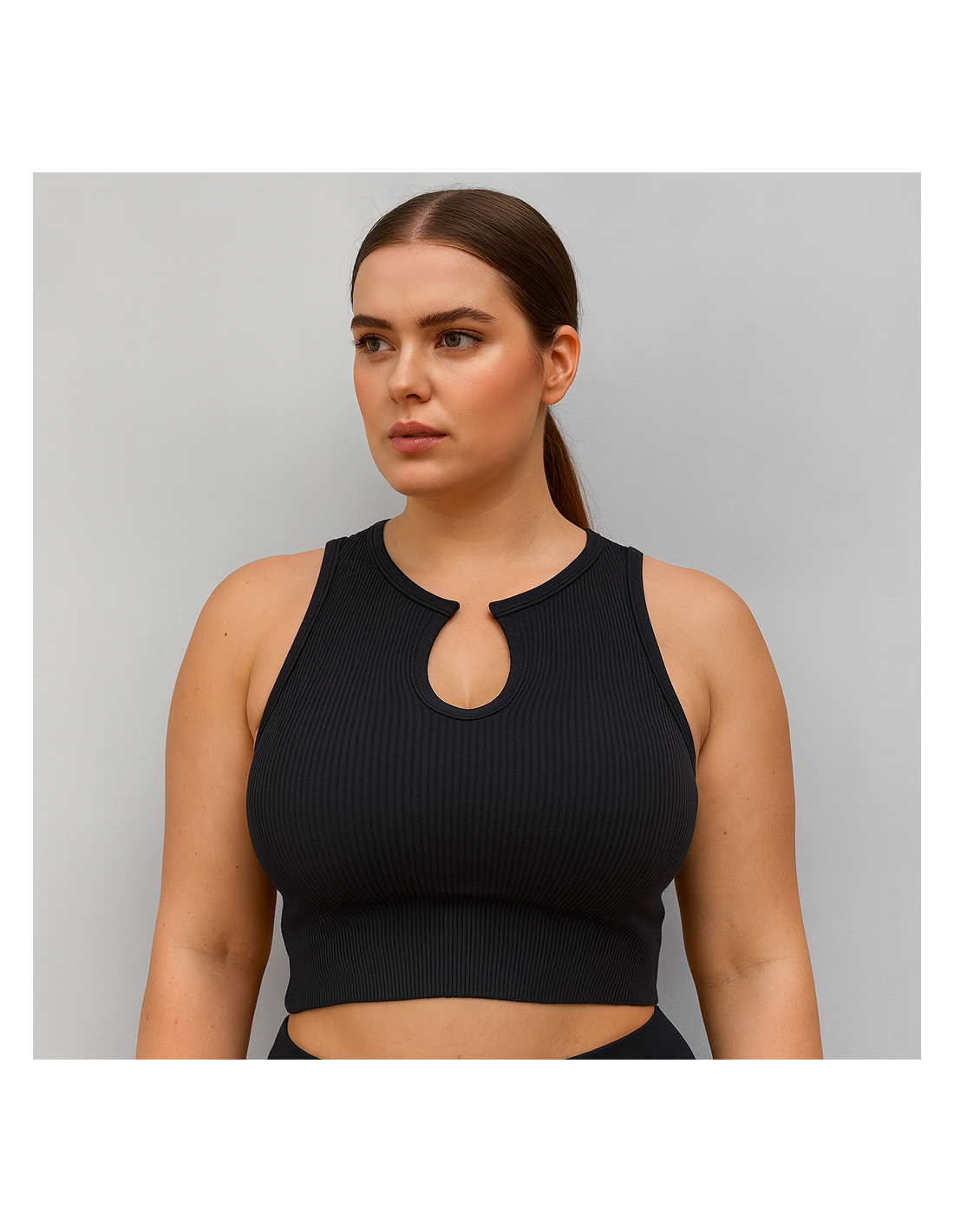 Top crop modelador sem costuras com compressão média e efeito push-up subtil. Malha canelada macia, decote keyhole e conforto o dia todo. Versátil para ginásio, dia a dia ou sobreposições. Disponível em várias cores.