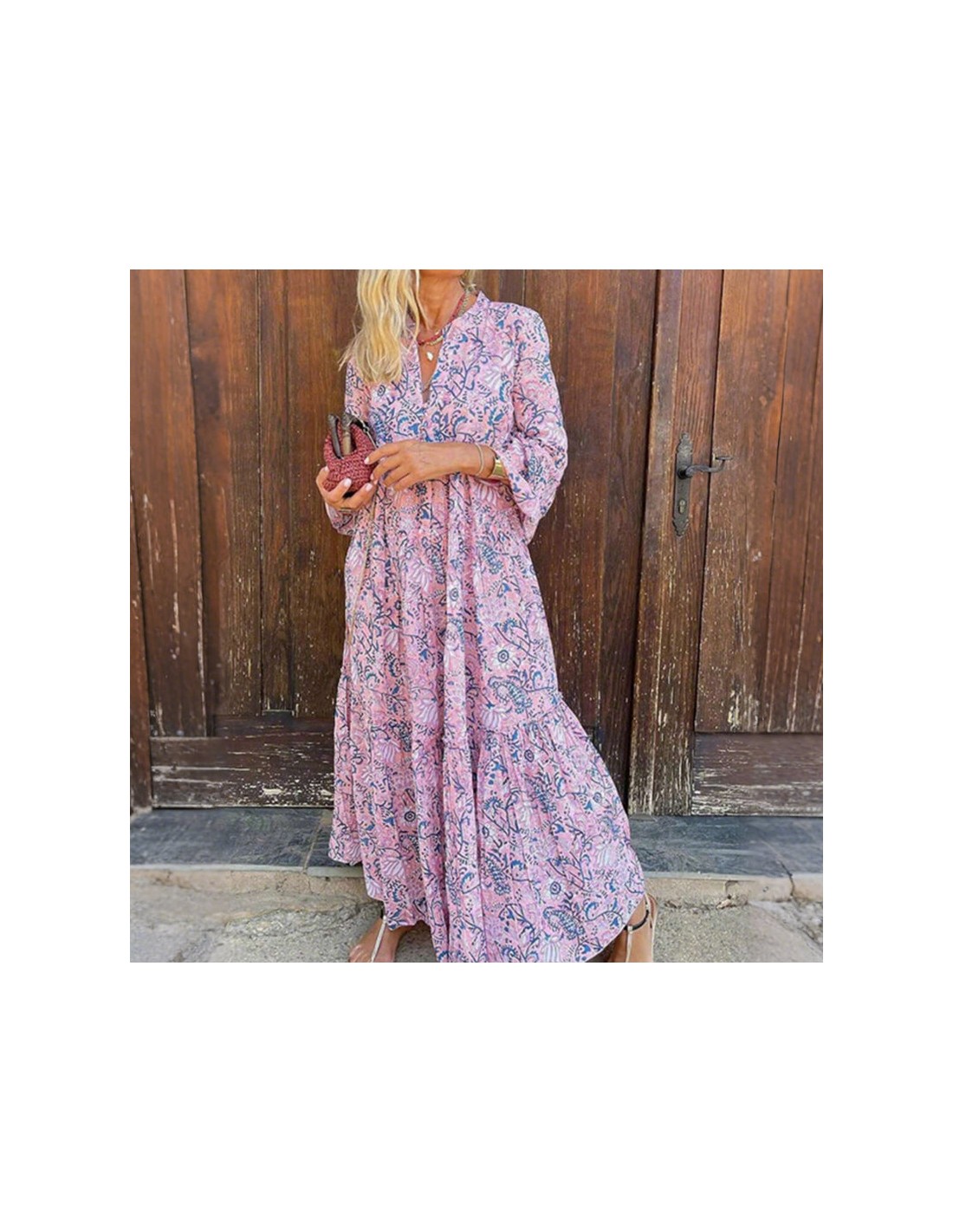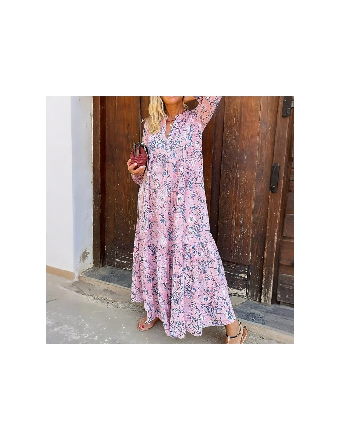 O vestido Sofia é a definição de elegância descontraída. Com um tom rosa suave e padrão floral delicado, este modelo longo é perfeito para dias de verão, passeios e momentos especiais. O corte fluido oferece liberdade de movimentos e conforto durante todo o dia.